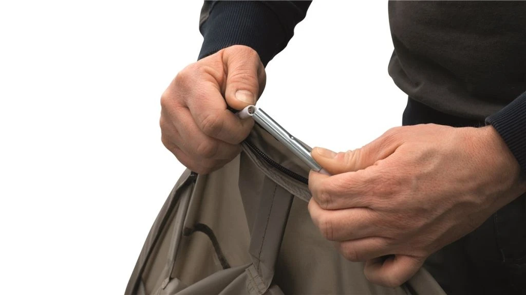 Easy access is guaranteed through the fold-flat entrance with double slider zippers on the door for flexible opening and a full mesh door behind. Mesh vent under the apex hood, with a plastic ring to hold its shape, and low covered vents ensure ample ventilation and easily adjustable fresh airflow.