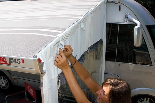 This side panel comes with a Crystal window and a rot-proof vinyl extension to the floor. The fabric is washable and has UV protection. The panel is easy to install, using elastic hooks and included pegs. It is suitable for Fiamma awnings over 3m in length, and other awning brands depending on length.
