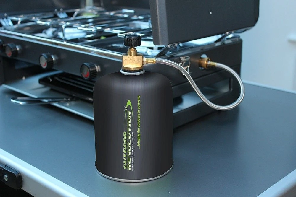 The gas canister has a re-sealable screw attachment that works with a multitude of gas appliances and is essential in running the Outdoor Revolution Twin Burner Gas Stove.