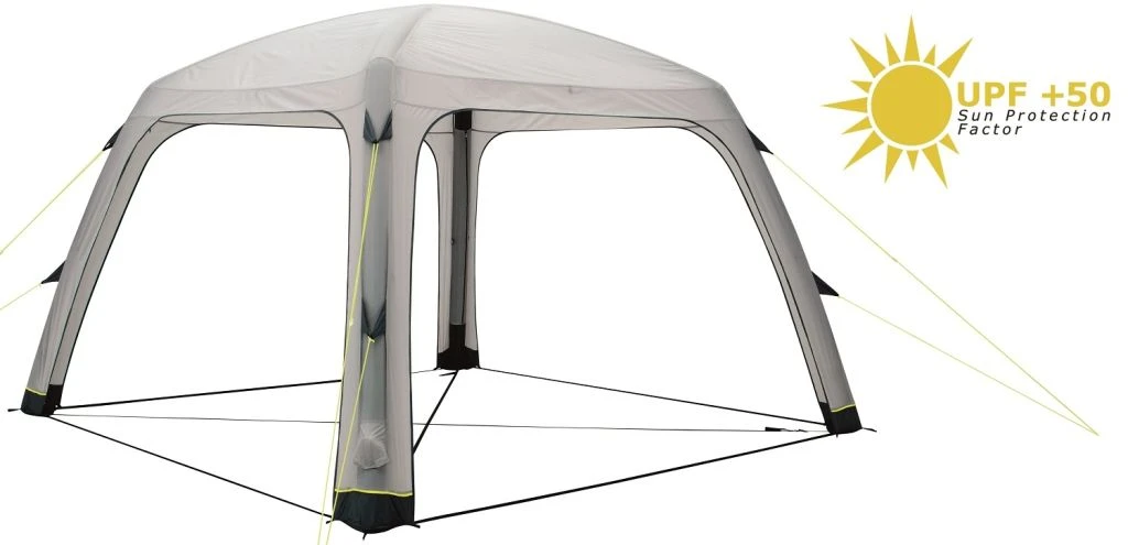 The Outwell Paradome Air Shelter features the One Air System frame. Erected from a single inflation point, it’s fast and easy to pitch with ample headroom plus superb stability via guylines and tube bracing straps.