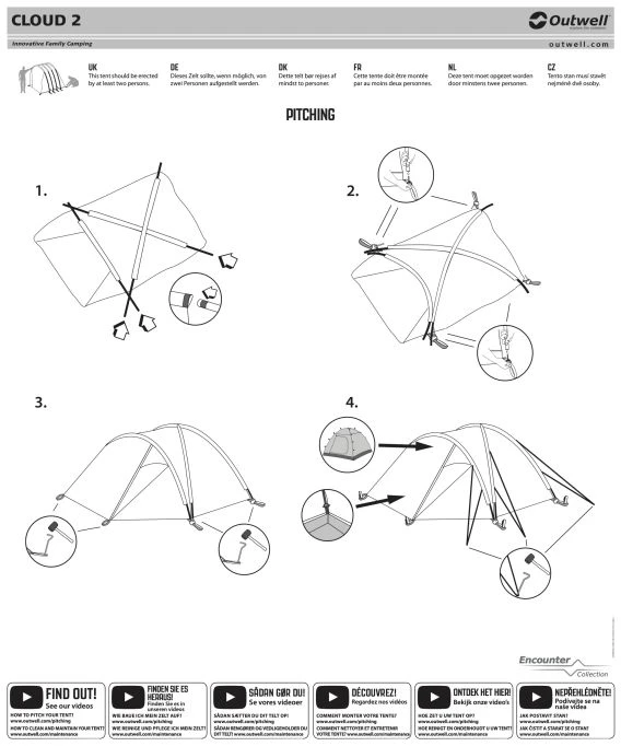 The Outwell Cloud 2 tent Cloud 2 offers ample living and sleeping space for two people in a lightweight dome style design with an extended porch over its wide front entrance.