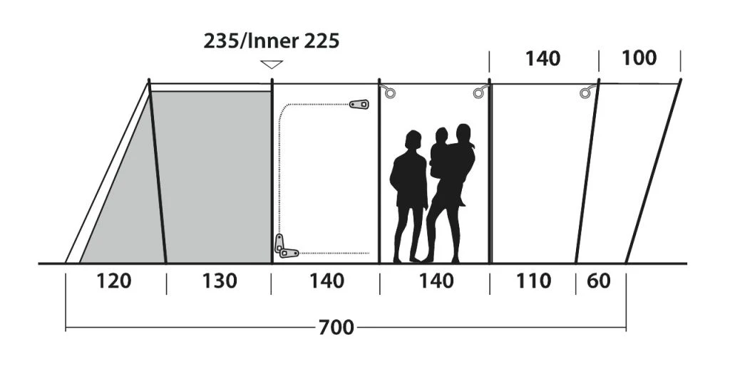 Home from home comfort and convenience is assured with Quick & Quiet Access to zone 2, the Outwell HookTrack System, Easy Pegging System, Cable Entry, zip-up curtains, Rear Ventilation System and low side vents.