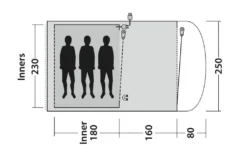 Sleeping seven in three Ambassador Master Bedrooms with Dark Inners and Quick & Quiet Inner Doors, the Outwell Vermont 7PE offers spacious, light-filled tent living.