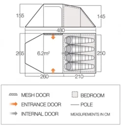 Home from home comfort and convenience are assured with Quick & Quiet Access to zone 2, the Outwell HookTrack System, Easy Pegging System, Cable Entry, zip-up curtains, Rear Ventilation System and low-side vents.